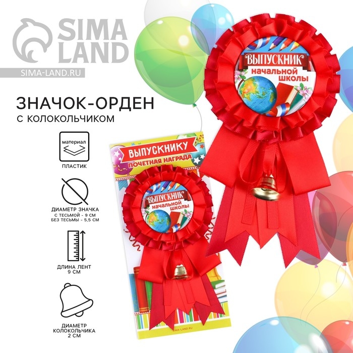 Значок - орден на Выпускной «Выпускник начальной школы», d = 9 см