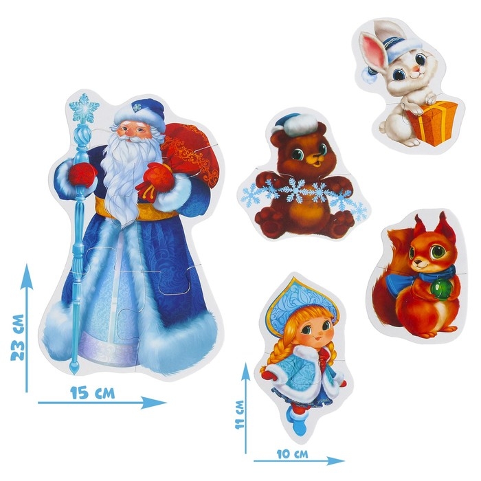 Макси-пазлы «Дед Мороз и его помощники», 5 пазлов, 13 деталей