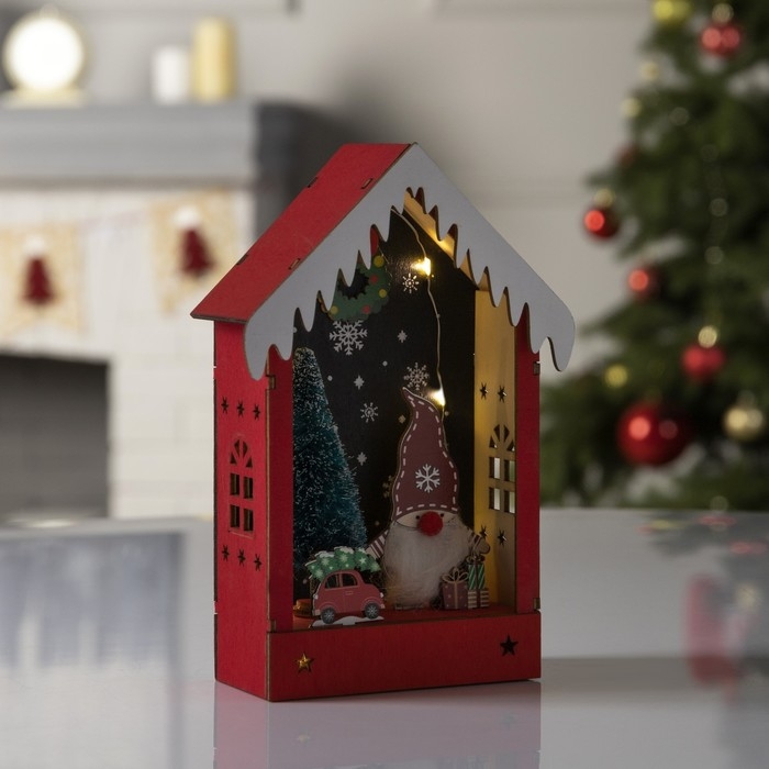 Светодиодная фигура «Красная хижина» 10 × 19 × 5 см, дерево, батарейки АААх2 (не в комплекте), свечение тёплое белое