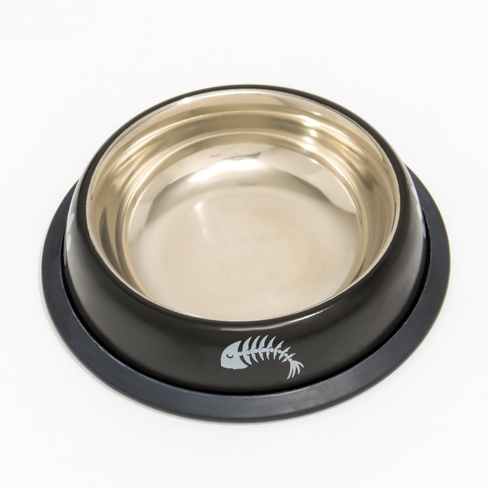 Миска с нескользящим основанием с принтом, 225 мл, чёрная
