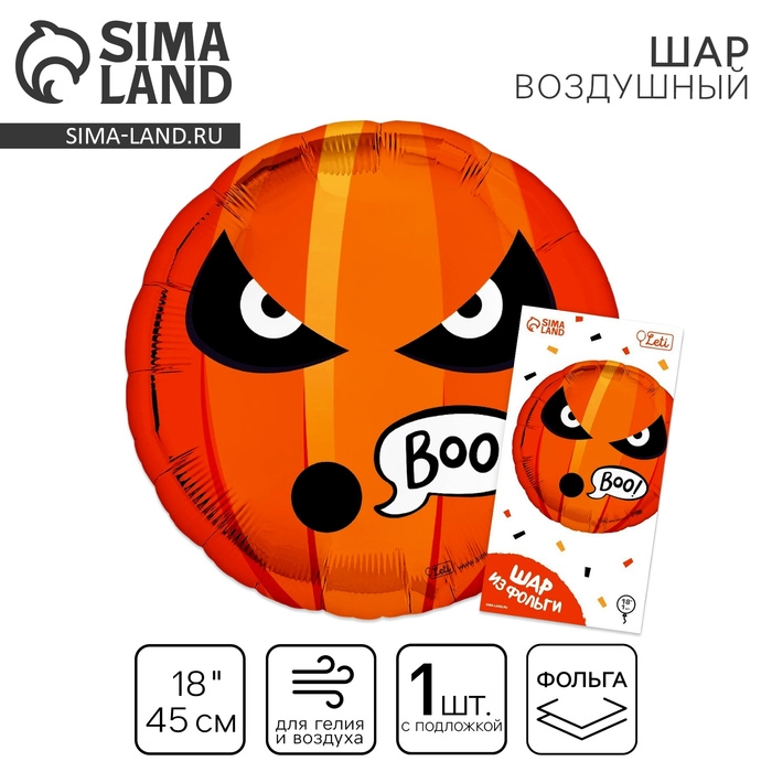 Воздушный шар фольгированный 18" «Буу» круг, с подложкой