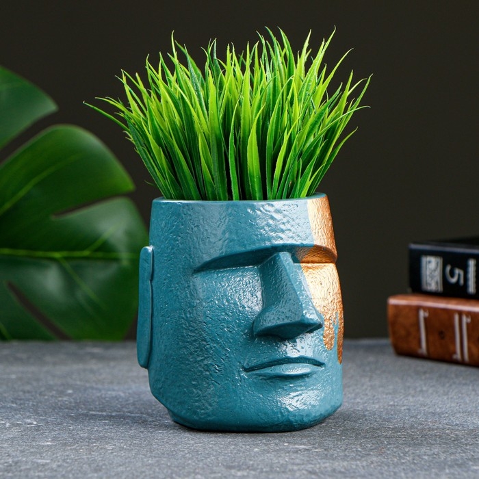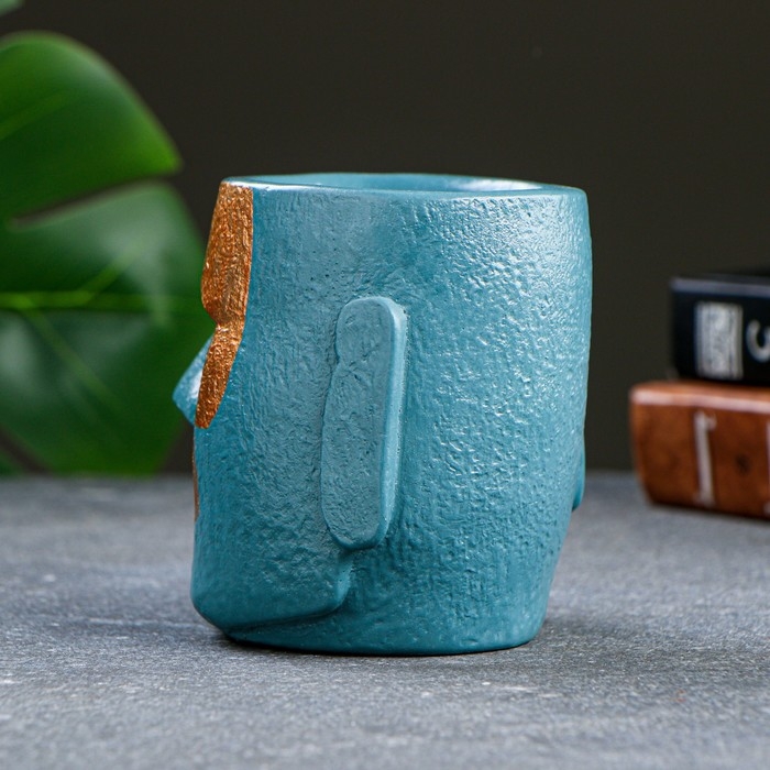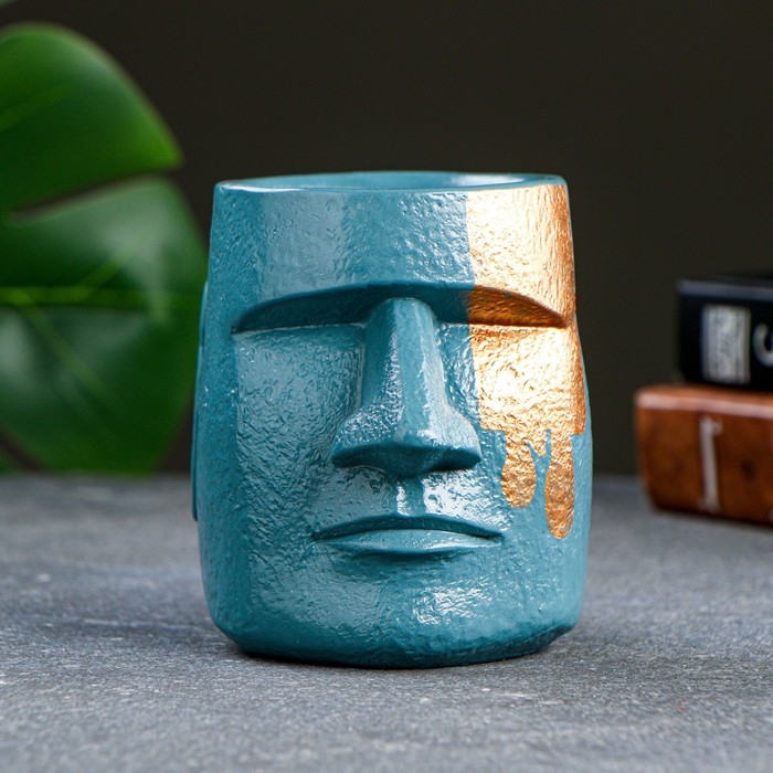 Кашпо - органайзер "Истукан моаи" бирюзовый бронза, 10см