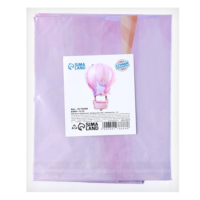 Шар фольгированный 31" «Воздушный шар с единорогом»
