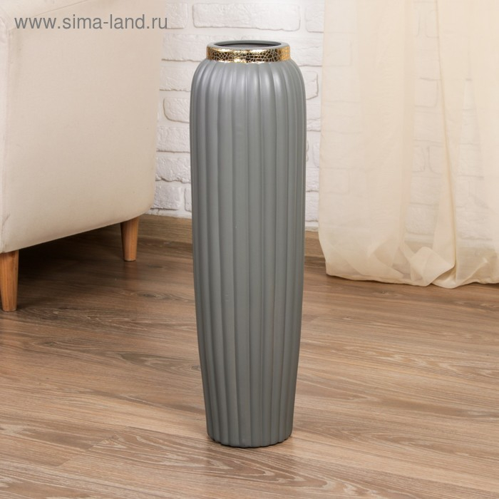 Ваза керамика напольная "Геометрия люкс" вертикаль, 60 см d-9,5 см, серый