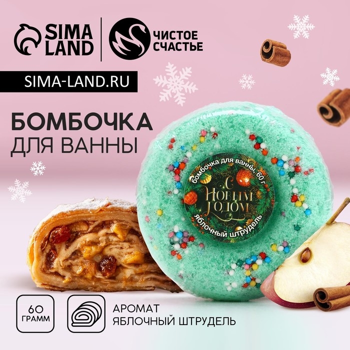 Бомбочка для ванны «С Новым Годом!», 60 г, аромат яблочного штруделя, ЧИСТОЕ СЧАСТЬЕ