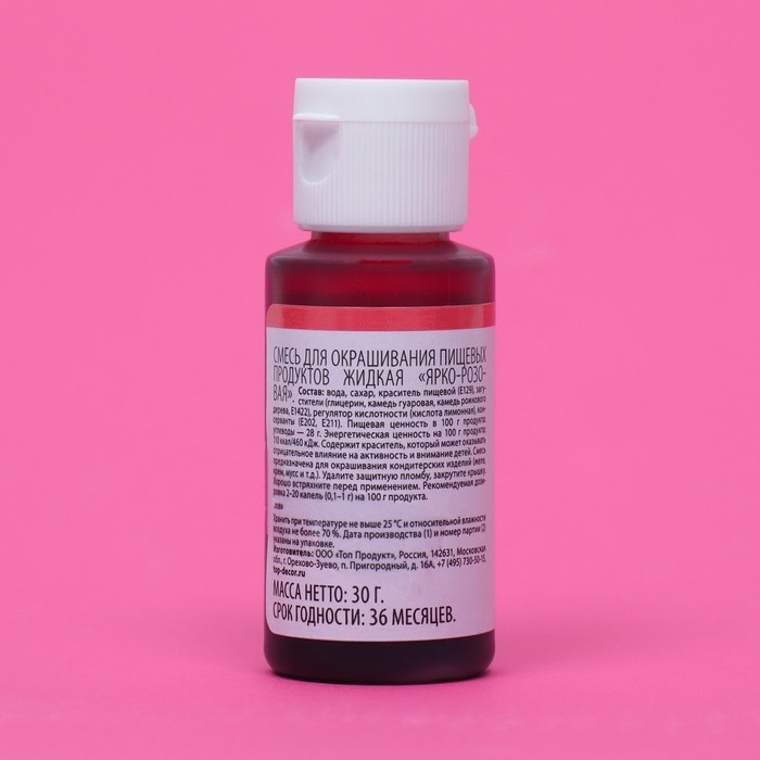 Пищевой краситель гелевый "Top decor", ярко-розовый, 30 г
