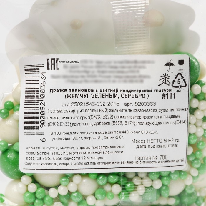 Посыпка кондитерская мягкая блестящая: зеленая, белая, 50 г.