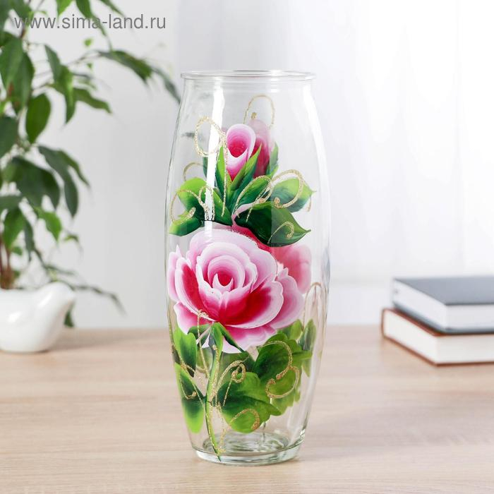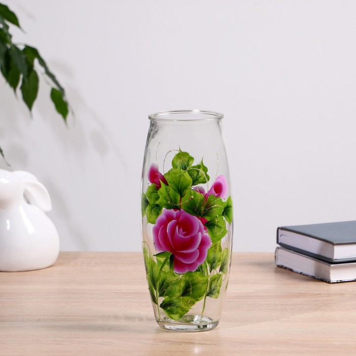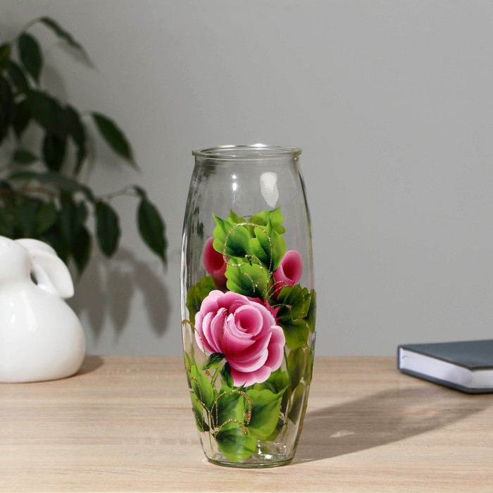 Ваза "Роза" роспись на проз.стекле, d-7см 10х23 см
