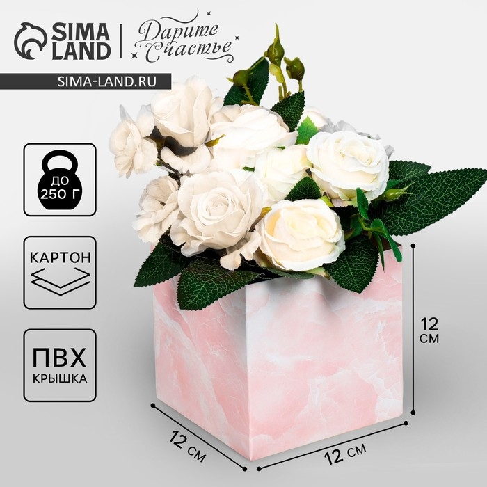 Коробка подарочная для цветов с PVC крышкой, упаковка, «Мрамор», 12 х 12 х 12 см