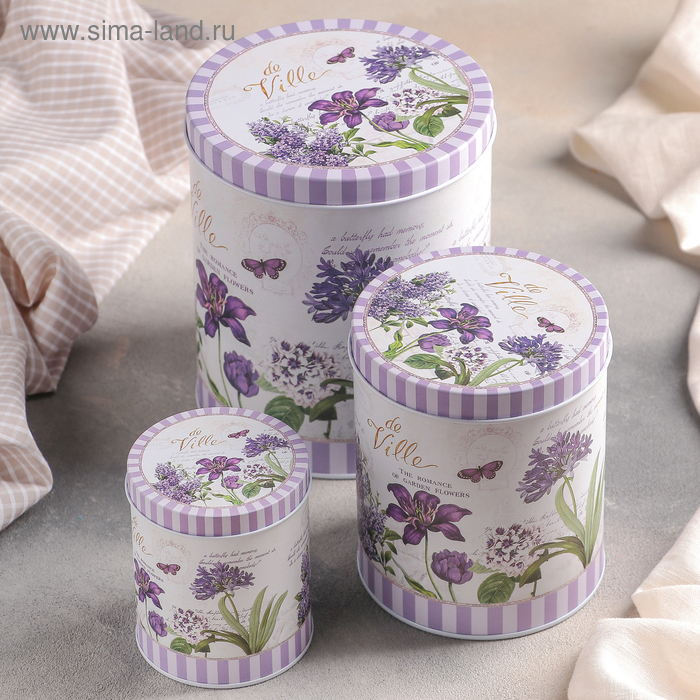 Банки жестяные для хранения сыпучих продуктов «Лаванда», 3 предмета: 400/1200/2250 мл, цвет фиолетовый