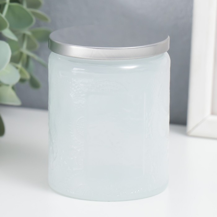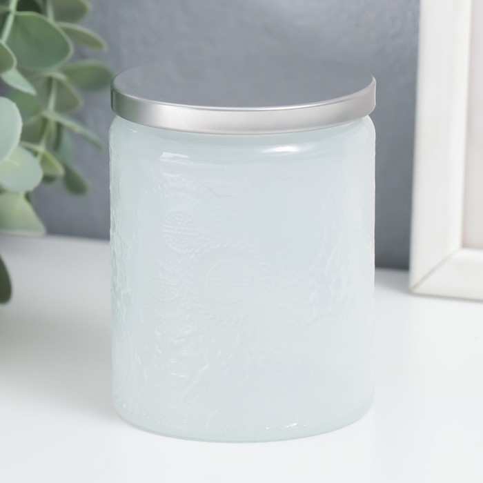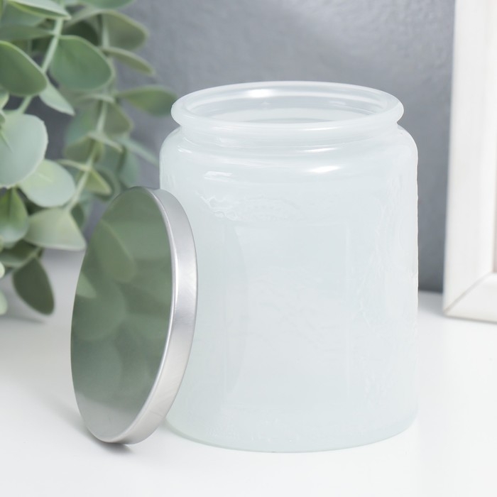 Банка для свечей стекло с крышкой "Цветочная" белая, цилиндр 9х7х7 см