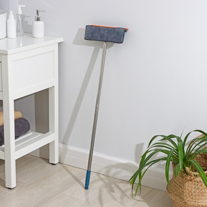 Силиконовый водосгон поможет убрать лишнюю жидкость. А благодаря оптимальной длине ручки вы доберётесь до труднодоступных мест.