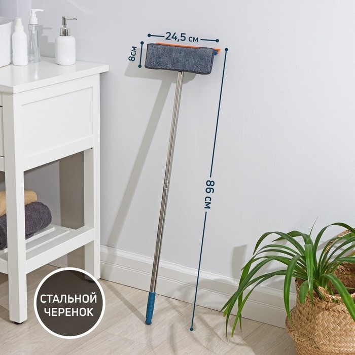 Окномойка с насадкой из микрофибры Доляна, фиксатор, стальная телескопическая ручка, 27×8×86(126) см, цвет МИКС