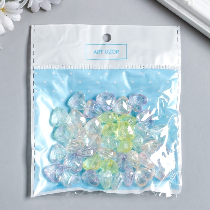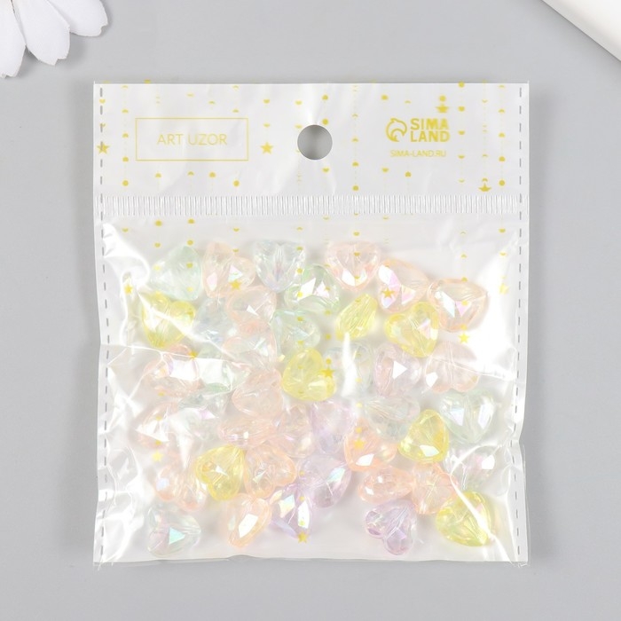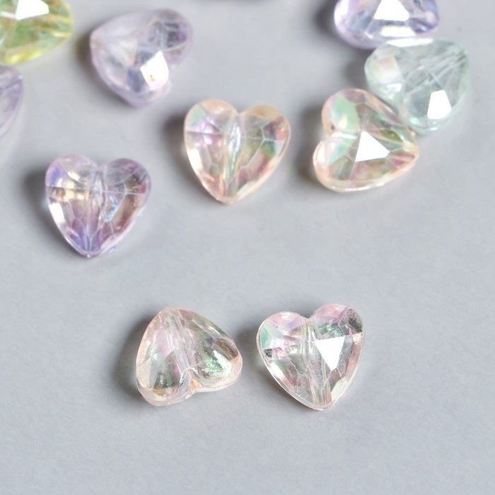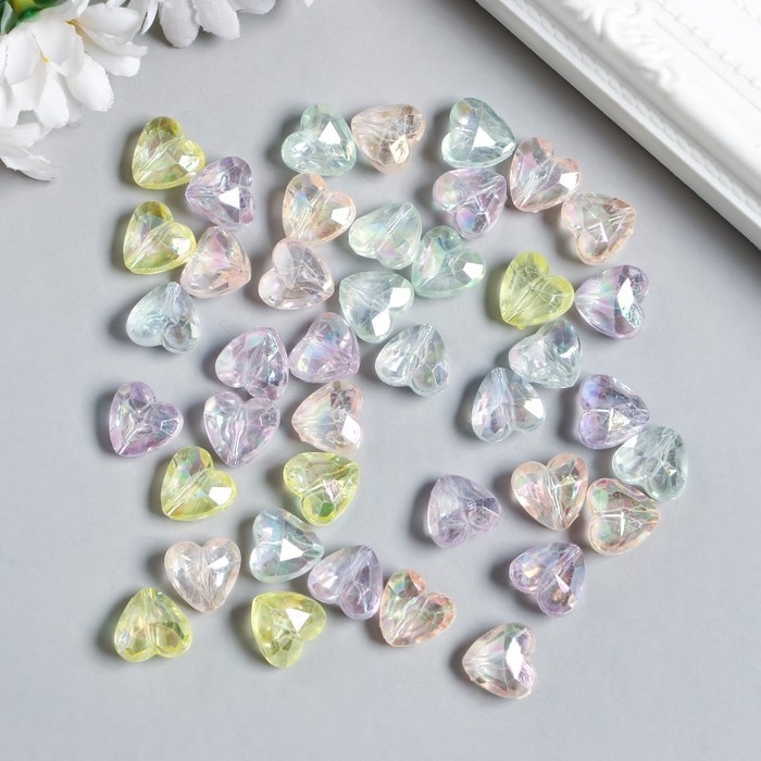 Бусины для творчества пластик "Сердечки с гранями" набор 25 гр МИКС 1х1,2х0,6 см