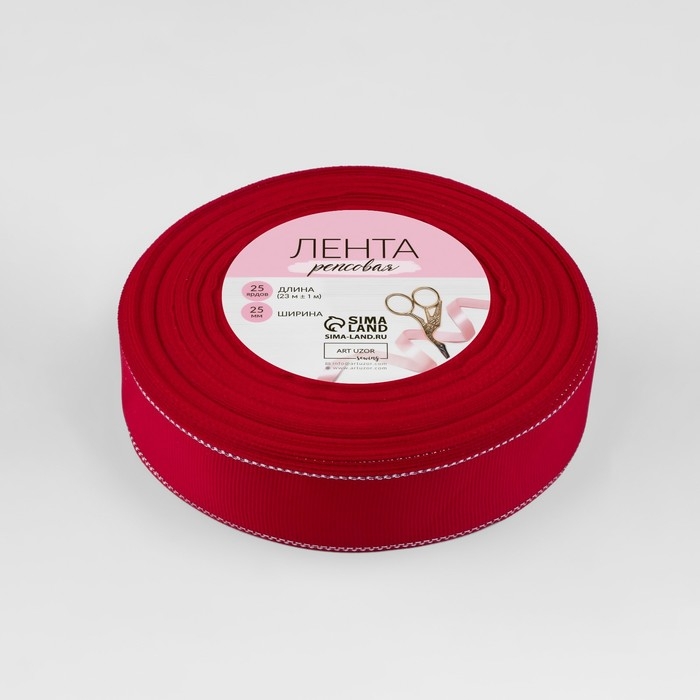 Лента репсовая «Золотые нити», 25 мм × 23 ± 1 м, цвет красный №026