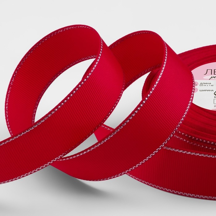 Лента репсовая «Серебряные нити», 25 мм × 23 ± 1 м, цвет красный №026