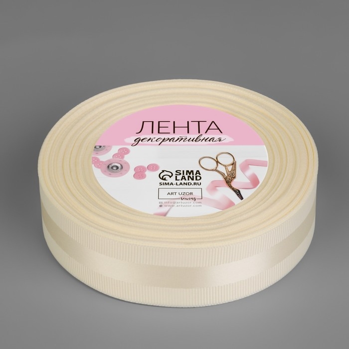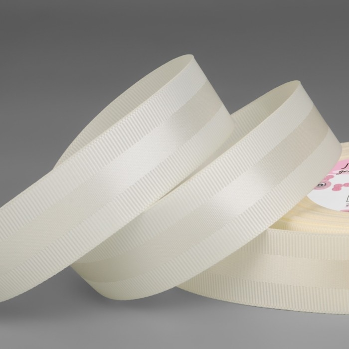 Лента декоративная, репсовая/атласная, 25 мм, 18 ± 1 м, цвет молочный №008