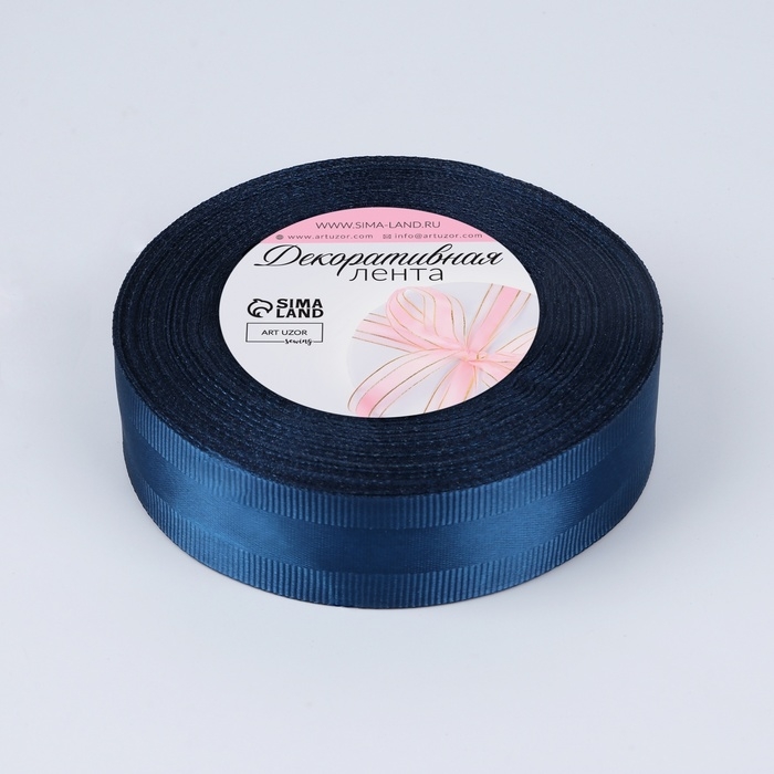Лента декоративная, репсовая/атласная, 25 мм, 18 ± 1 м, цвет тёмно-синий №038