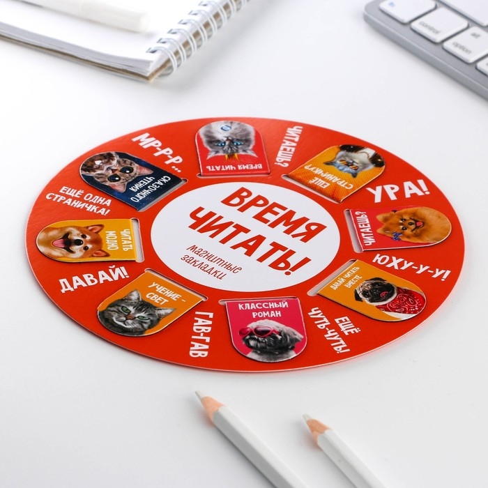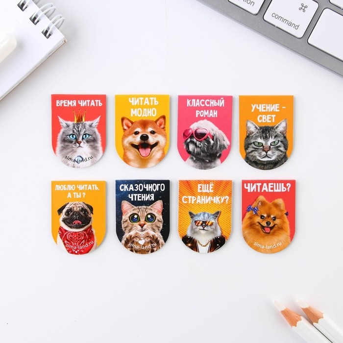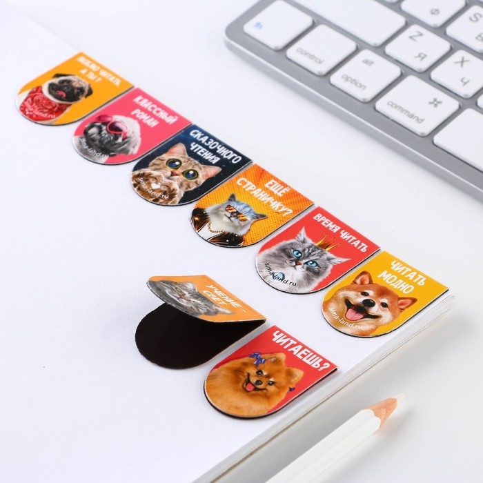 Набор магнитных закладок 8 шт на круглой подложке "Звери"
