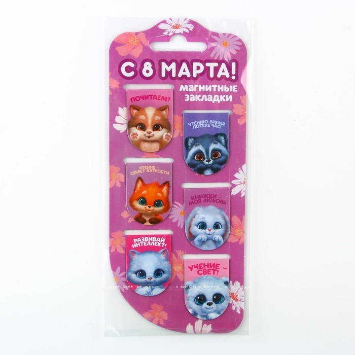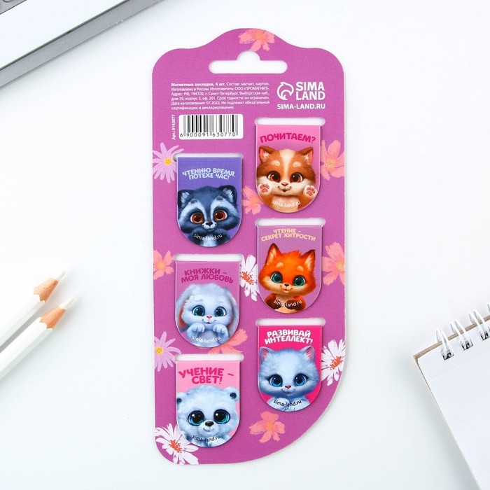 Набор закладок магнитных 6 штук "Котята", ассорти