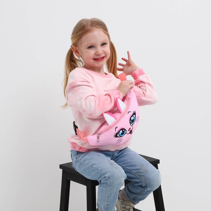 Сумка поясная детская для девочки "Кошечка", 31 х см, отдел на молнии, цвет красный
