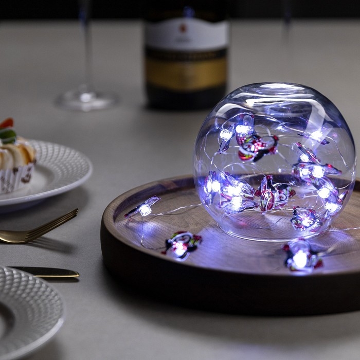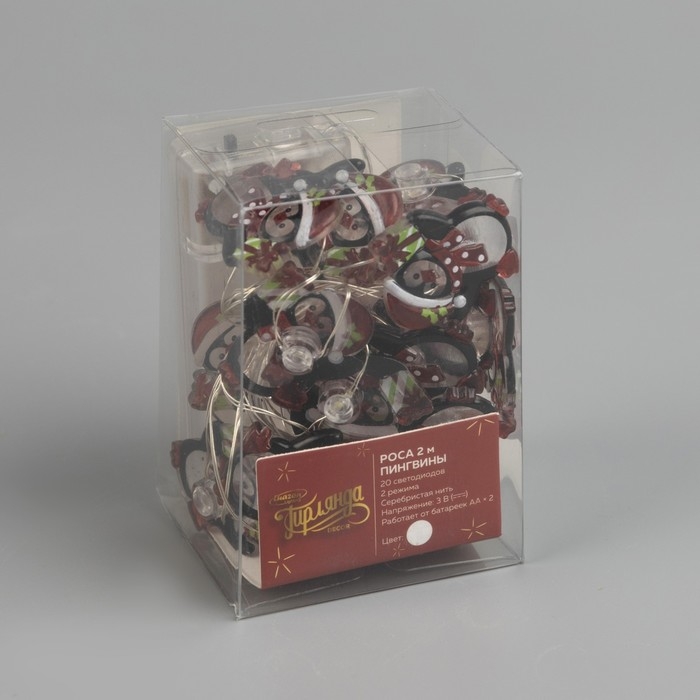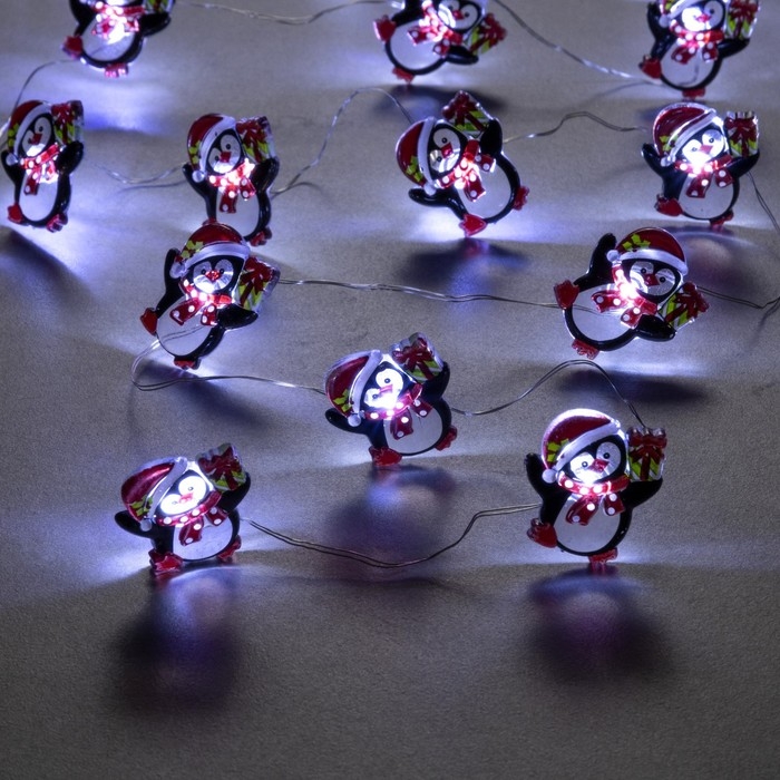 Гирлянда «Нить» 2 м роса с насадками «Пингвин», IP20, серебристая нить, 20 LED, 2 режима, батарейки ААх2 (нет в комплекте), свечение белое