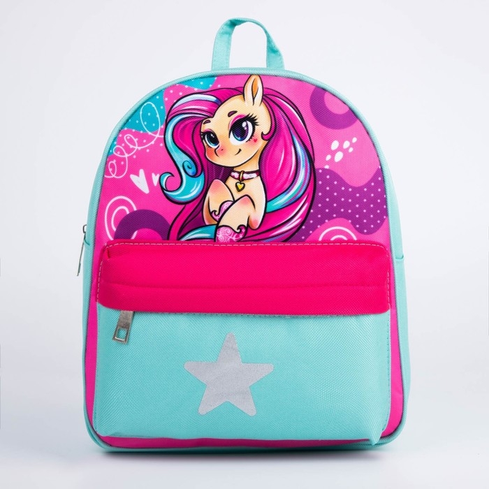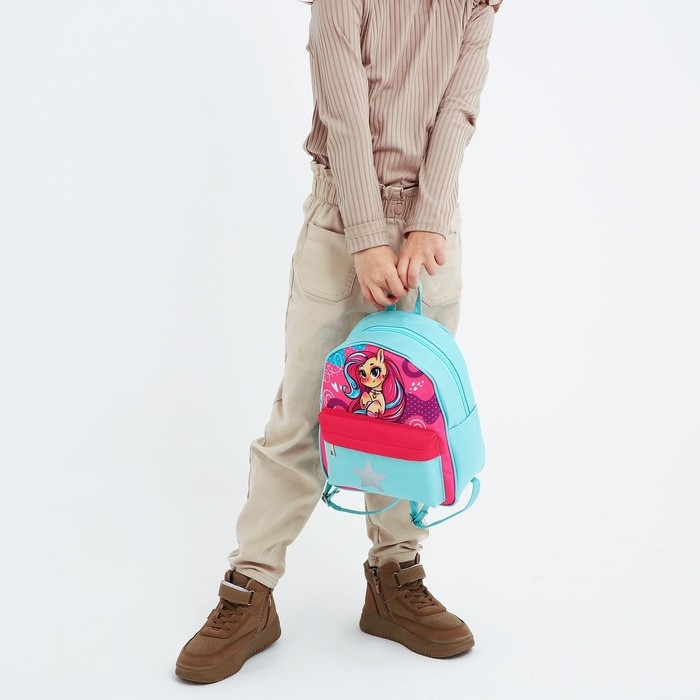 Рюкзак школьный текстильный c карманом «Волшебная лошадка», светоотр. элементы, 27х23 х 10 см