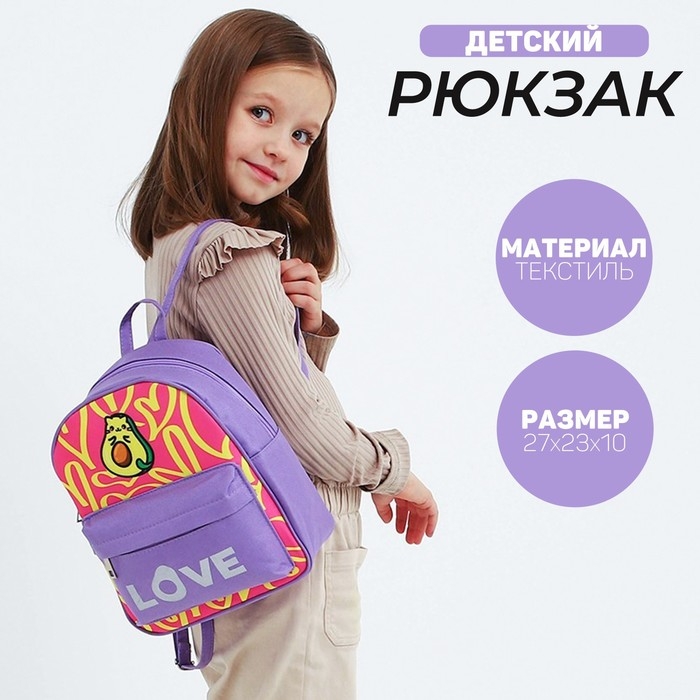 Рюкзак школьный текстильный c карманом «Авокотик», светоотр. элементы, 27х23х10 см
