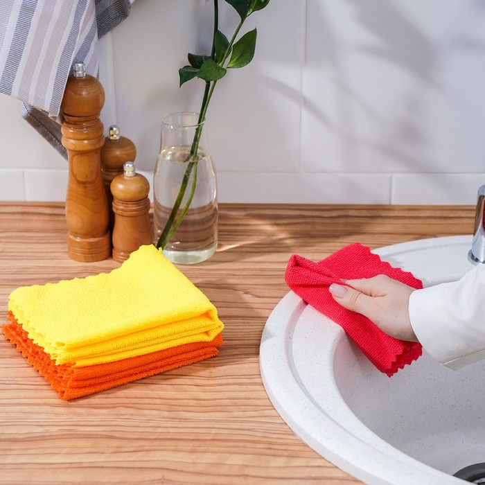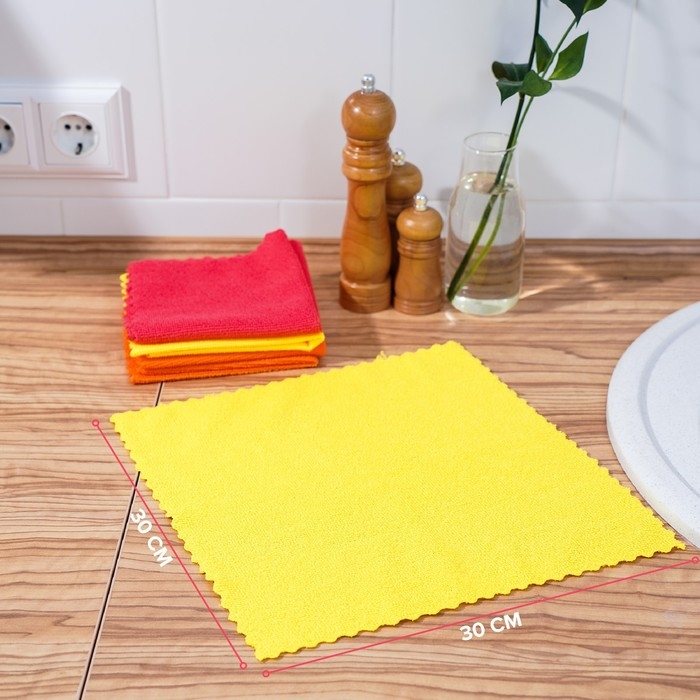 Салфетка универсальная Доляна «Промо», 180 г/м², 5 шт, 30×30 см, микрофибра, ультразвуковая обработка края, цвет МИКС