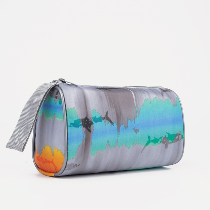 Косметичка на молнии, цвет серый/бирюзовый