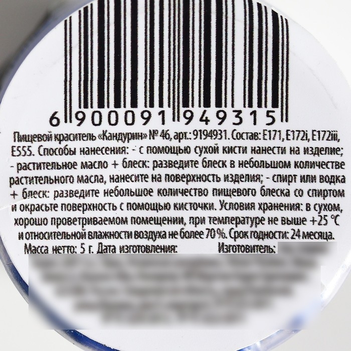 Область применения: наносить на поверхность продукта (шоколад, марципан, сахарная мастика, глазурь), окрашивание прозрачных масс (напитки, желе, мармелад, гель, карамель).