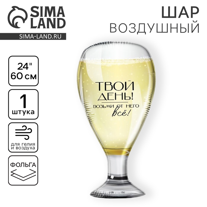 Фольгированный шар в виде бокала шампанского подойдёт как дополнение к подарку для лучшей подруги! На нём написано: «Твой день! Возьми от него всё!». Отлично подойдёт в качестве атрибута для фотографий с подругами.