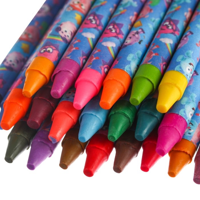 Каждый карандаш завернут в бумажную этикетку с героем мультфильма, что предохраняет от загрязнений, снижает скольжение, увеличивает прочность. Восковые карандаши упакованы в картонную коробку с европодвесом.