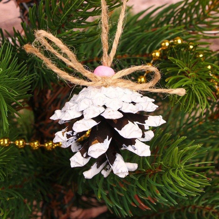 Новогодняя композиция «Шишки с бусинками», набор 6 шт.