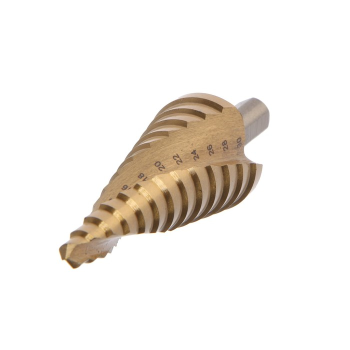 Сверло ступенчатое ТУНДРА, HSS, TiN, трехгранный хвостовик, 9 - 36 мм
