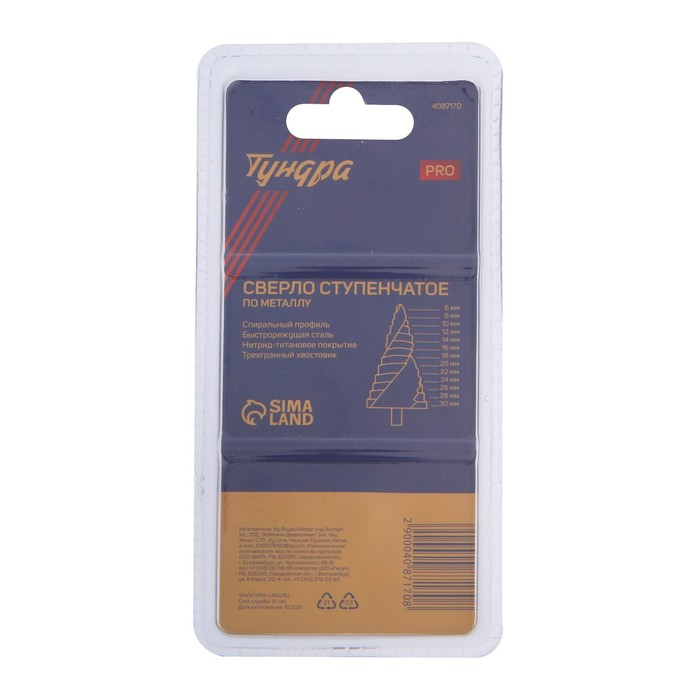 Сверло ступенчатое ТУНДРА ПРОФИ, HSS-Co, спиральный профиль, шестигранный хвостовик, 4-12 мм