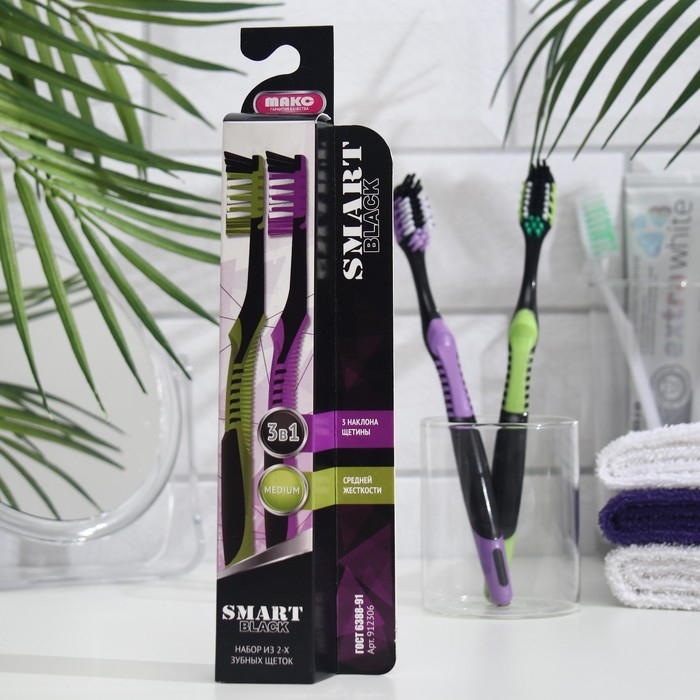 Зубная щётка «Смарт» Black средней жесткости, фиолетовый + зеленый, 2 шт.