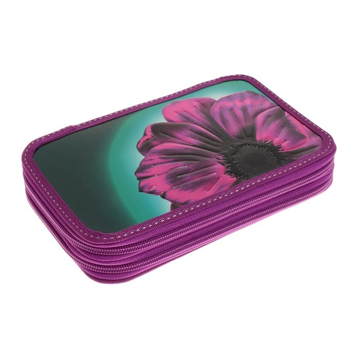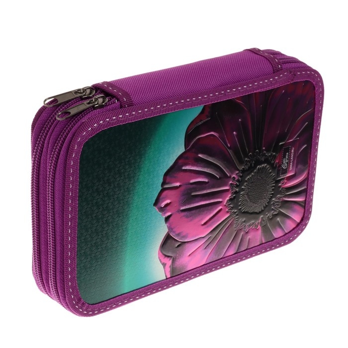 Пенал 2 секции, 125 х 205 х 40 мм, 81П26/2 Calligrata "Цветок" (объемный 3D-рисунок с эффектом металлика)