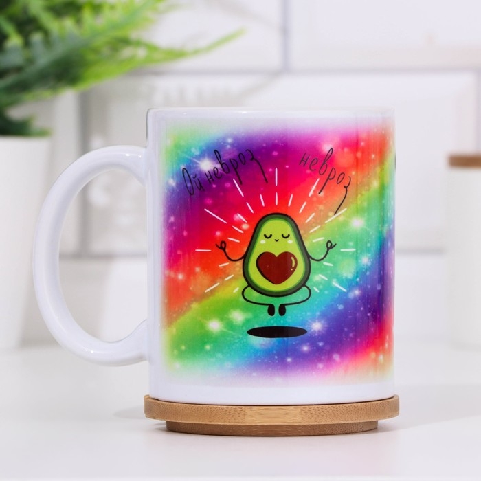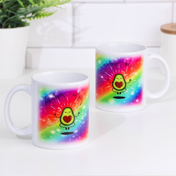 Кружка изготовлена из керамики. Рисунок нанесён методом сублимации, при котором краска проникает в верхний слой изделия, поэтому изображение получается стойким.