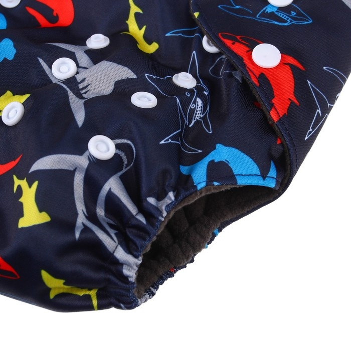 Многоразовый подгузник «Акулы», 3-15 кг, угольно-бамбуковая ткань, цвет черный, Крошка Я