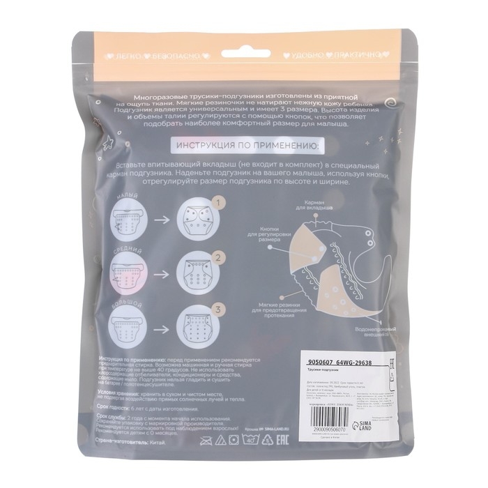 • Подгузник имеет удобный кармашек для вкладыша;