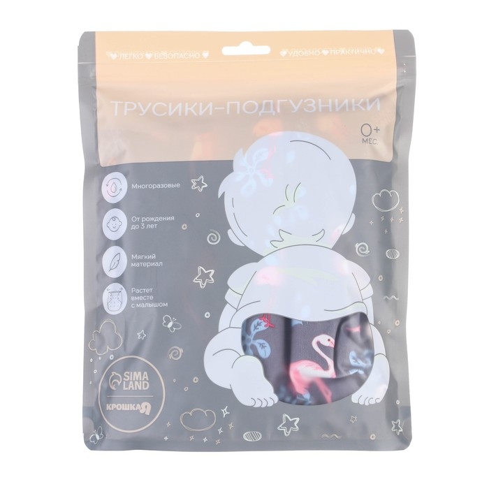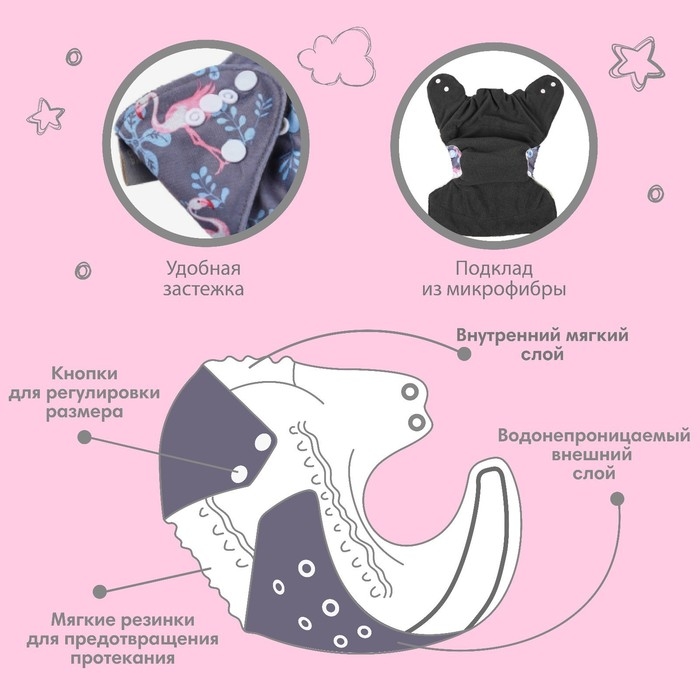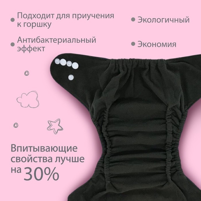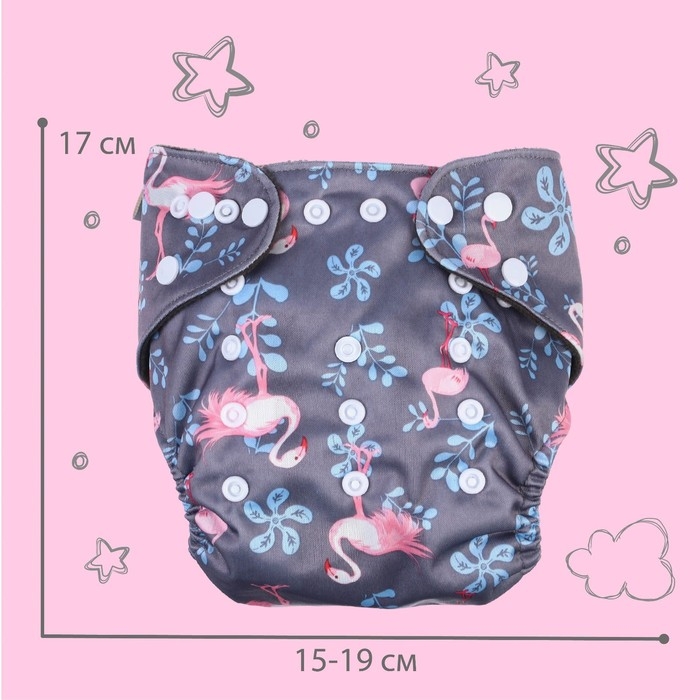 Многоразовый подгузник «Фламинго», 3-15 кг, угольно-бамбуковая ткань, цвет серый, Крошка Я