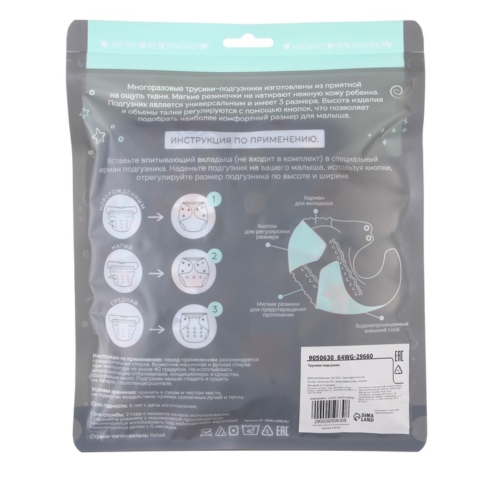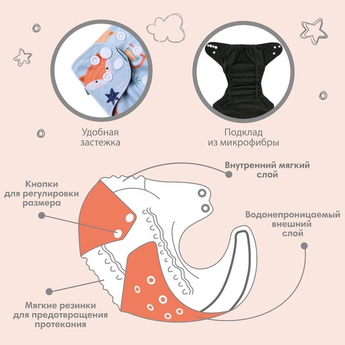 • Подгузник имеет удобный кармашек для вкладыша;
