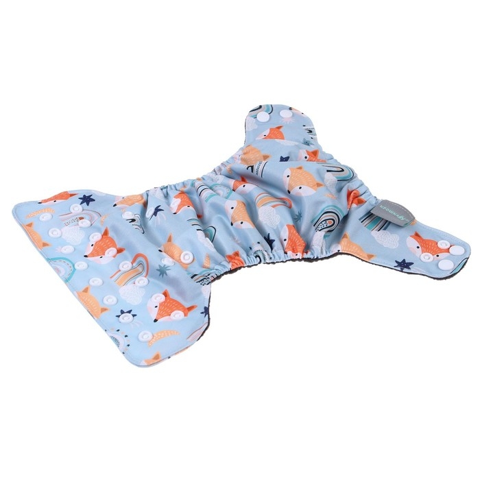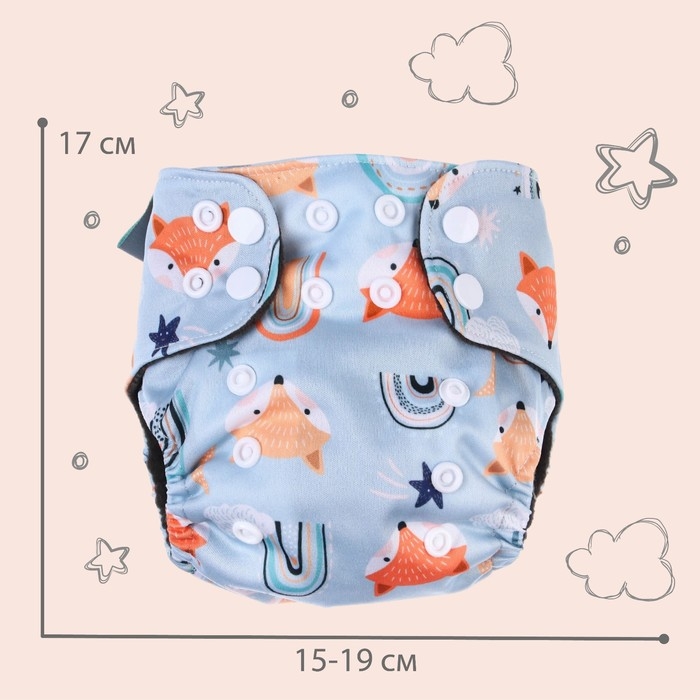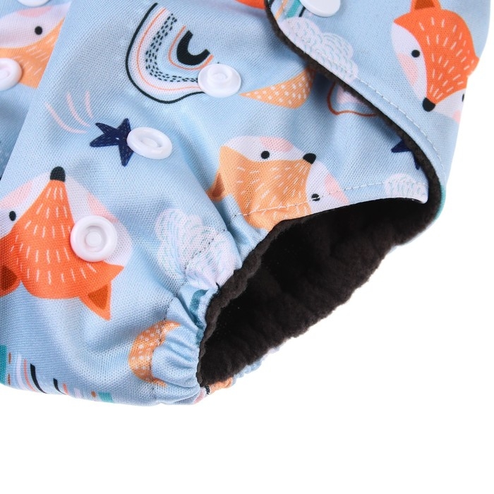 Многоразовый подгузник «Лисички», 3-8 кг, угольно-бамбуковая ткань, цвет голубой, Крошка Я