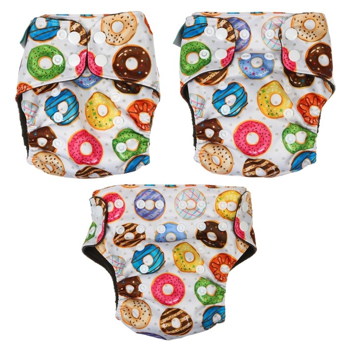 Многоразовый подгузник «Пончики», 3-8 кг, угольно-бамбуковая ткань, Крошка Я