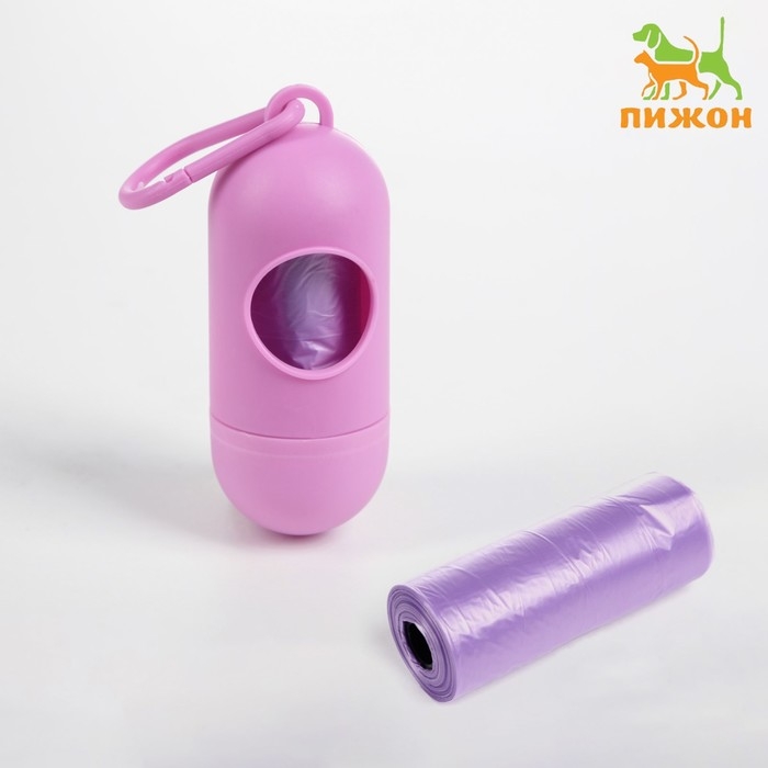 Контейнер с пакетами для уборки за собаками (рулон 15 пакетов 29х21 см), фиолетовый
