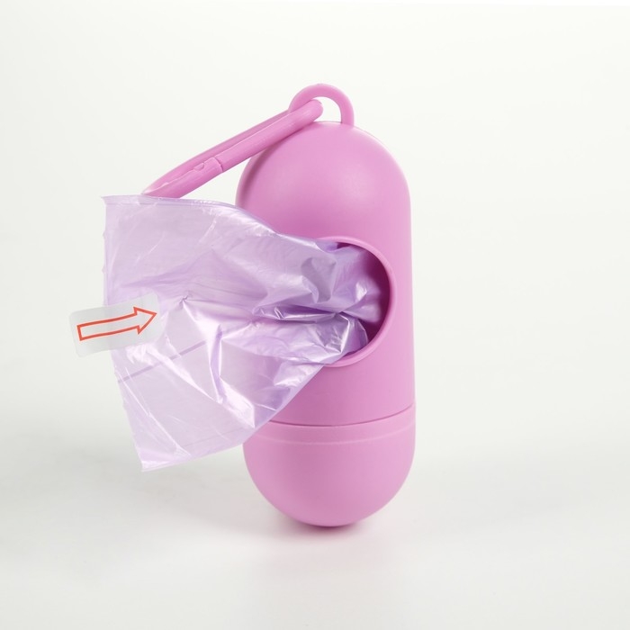 Контейнер для гигиенических пакетов для животных. Контейнер удобно брать с собой во время выгула собак. Хозяин животного может легко и быстро извлечь пакет и воспользоваться им для уборки отходов. Пакеты изготовлены из прочного полиэтилена, что исключает разрыв в процессе использования.
