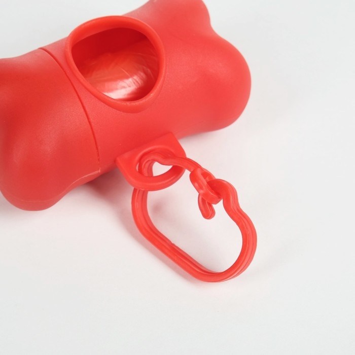 Контейнер-косточка с мешками для уборки (рулон 15 пакетов 29х21 см), красный