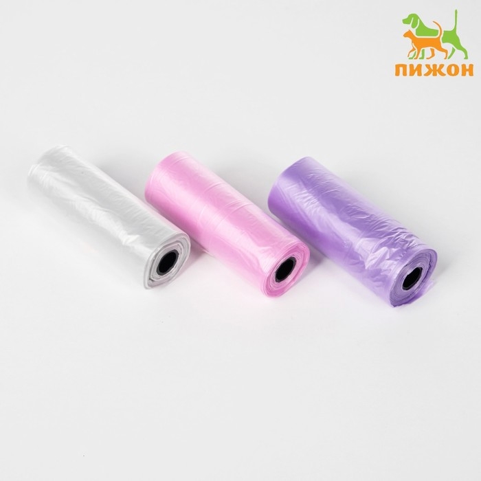 Пакеты для уборки за собаками однотонные (3 рулона по 15 пакетов 29х21 см), микс цветов №2