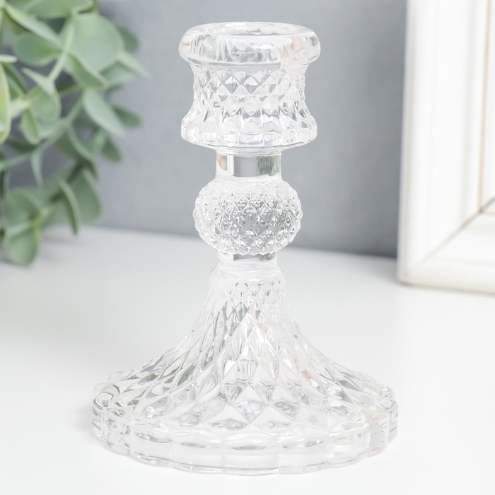 Подсвечник стекло на 1 свечу "Женева" d-2,2 см прозрачный 10,5х7,7х7,7 см